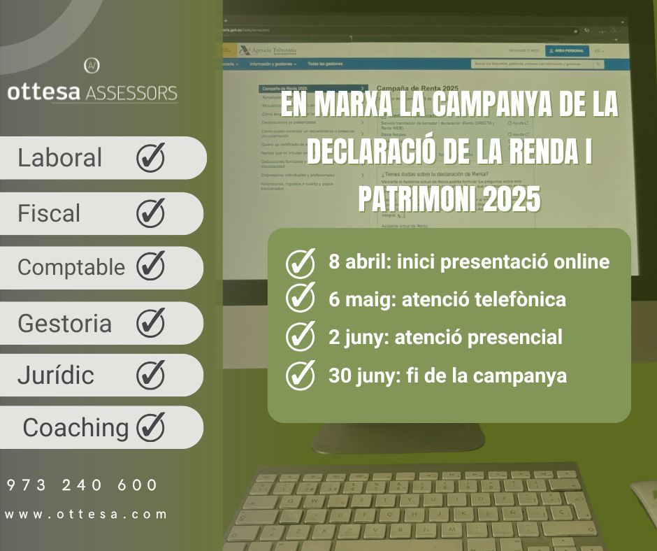 Avui, 8 d’abril de 2026, s’inicia oficialment la campanya de la declaració de la renda i patrimoni corresponent a l’exercici 2025. Es tracta d’un dels processos fiscals més rellevants de l’any, que afecta milions de contribuents a tot l’Estat.
