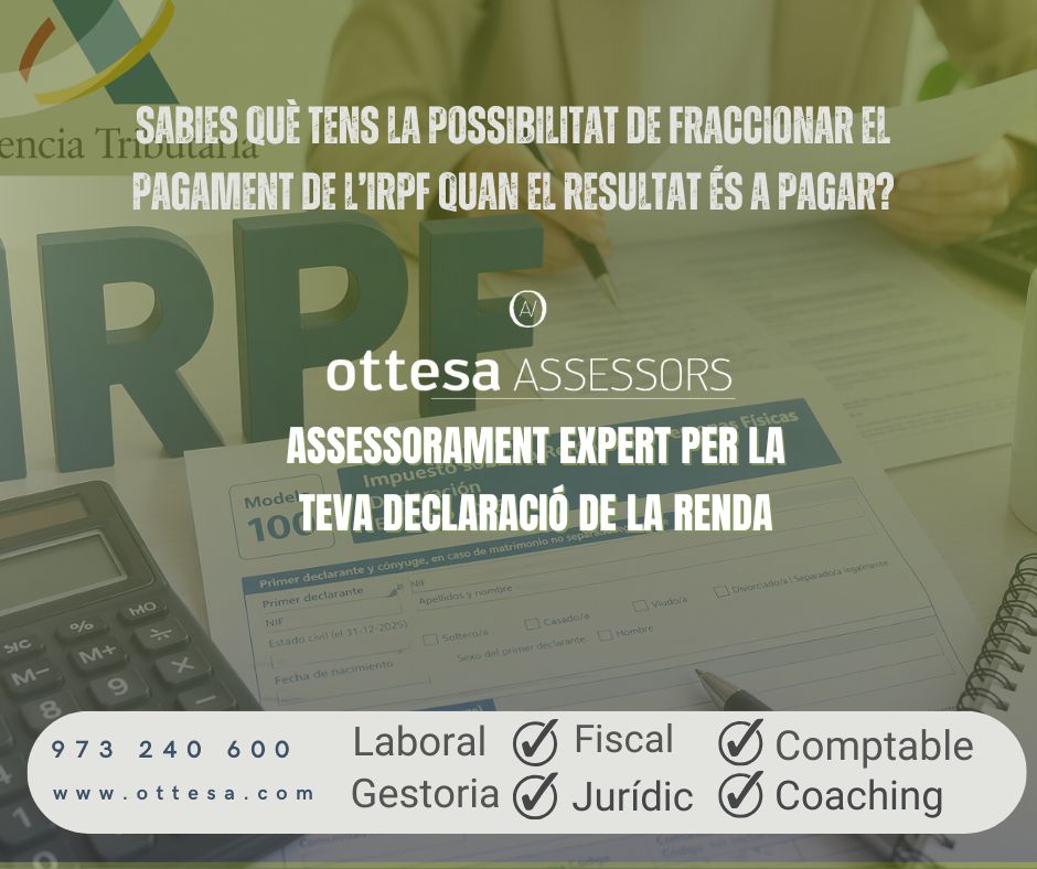 En aquesta campanya renda 2026 compta amb l’assessorament professional d’Ottesa Assessors